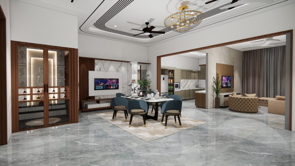 3d rendering modern dining room and living room with luxury decor